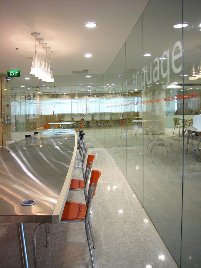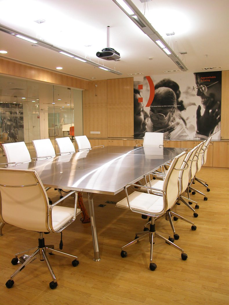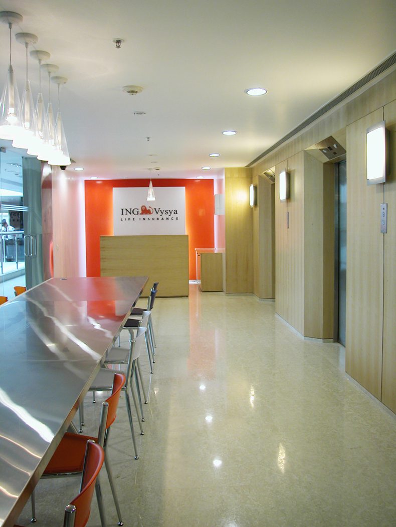 We were asked to design the Life Insurance offices for ING-Vysya, an Indo-Dutch collaboration, at their corporate headquarters in Bangalore. Our brief was to create a contemporary, global environment with a touch of local flavour reflecting the partnership netween ING, a global Dutch bank and Vysya, an Indian bank. We were asked to reflect the brand’s core values of transparency, care and performance.