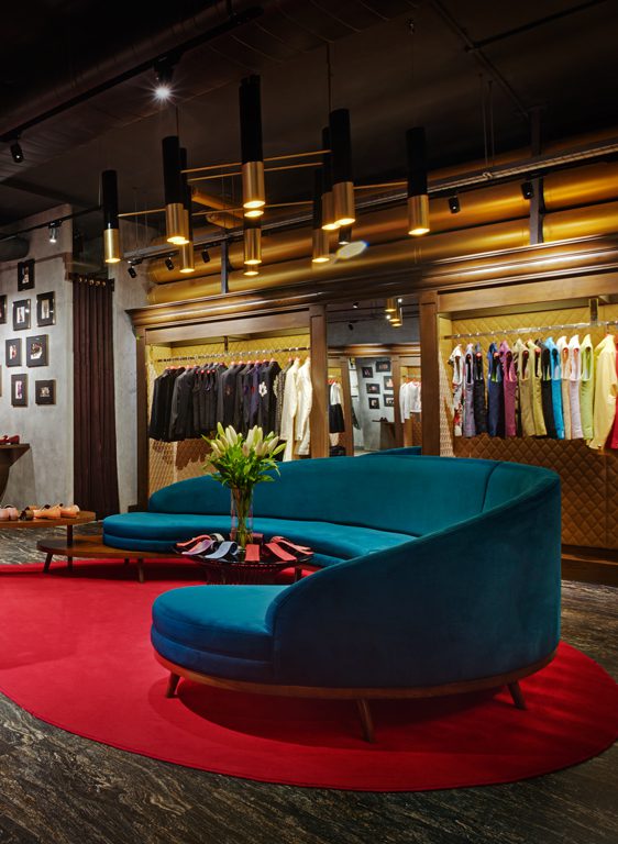 The designer’s focus and strength is on menswear and our first point of reference on the conceptual look and feel of the store was the gentlemen’s club.