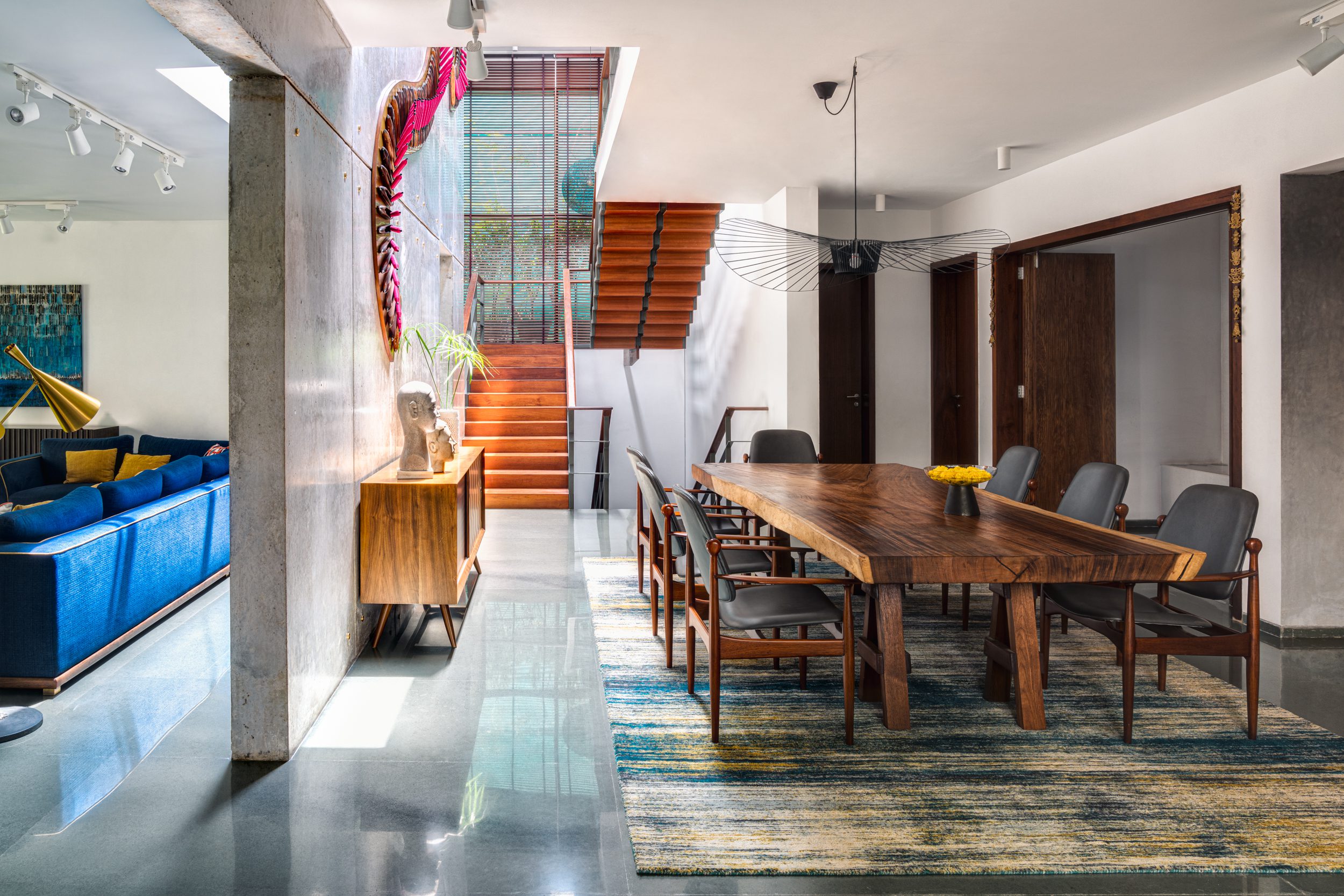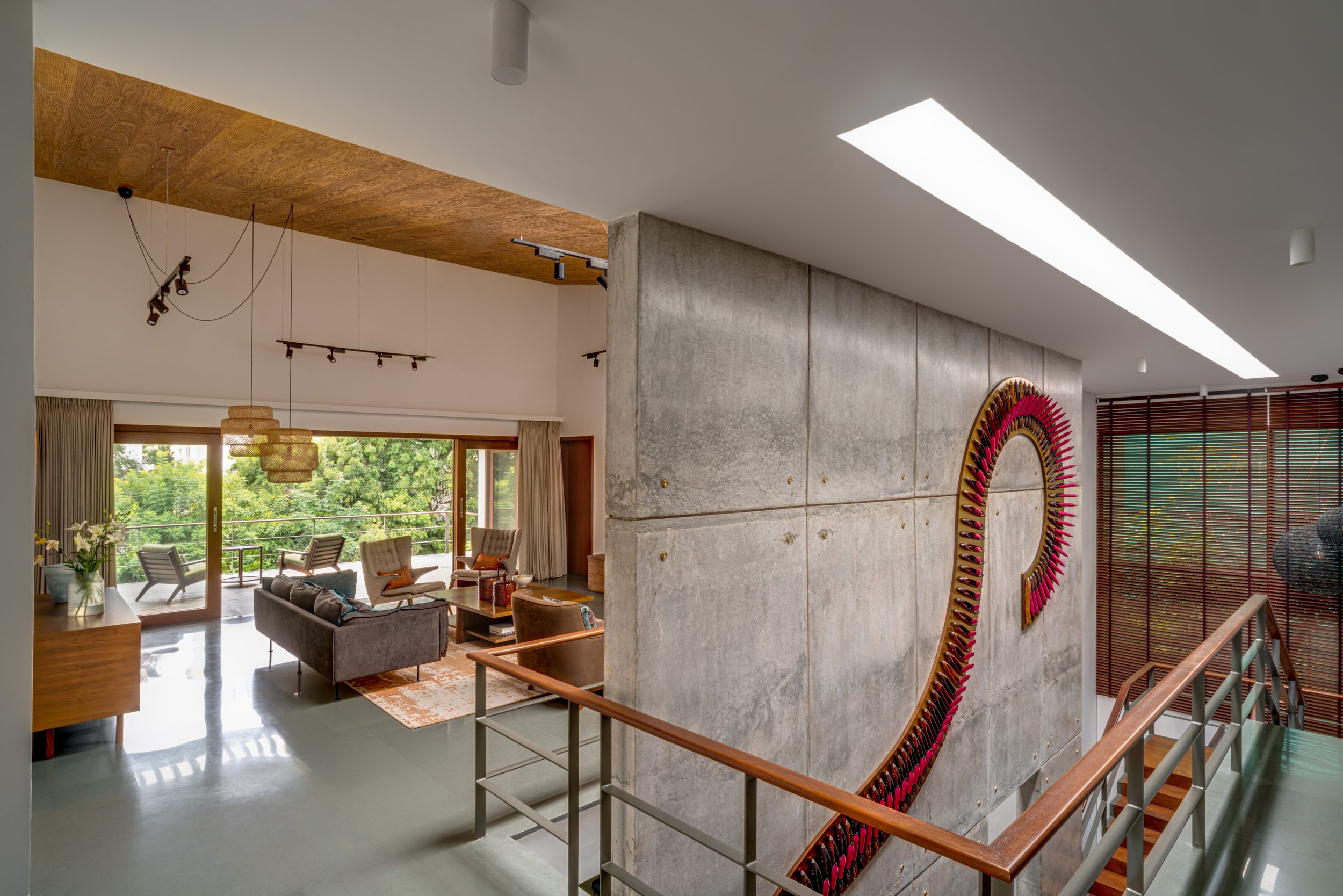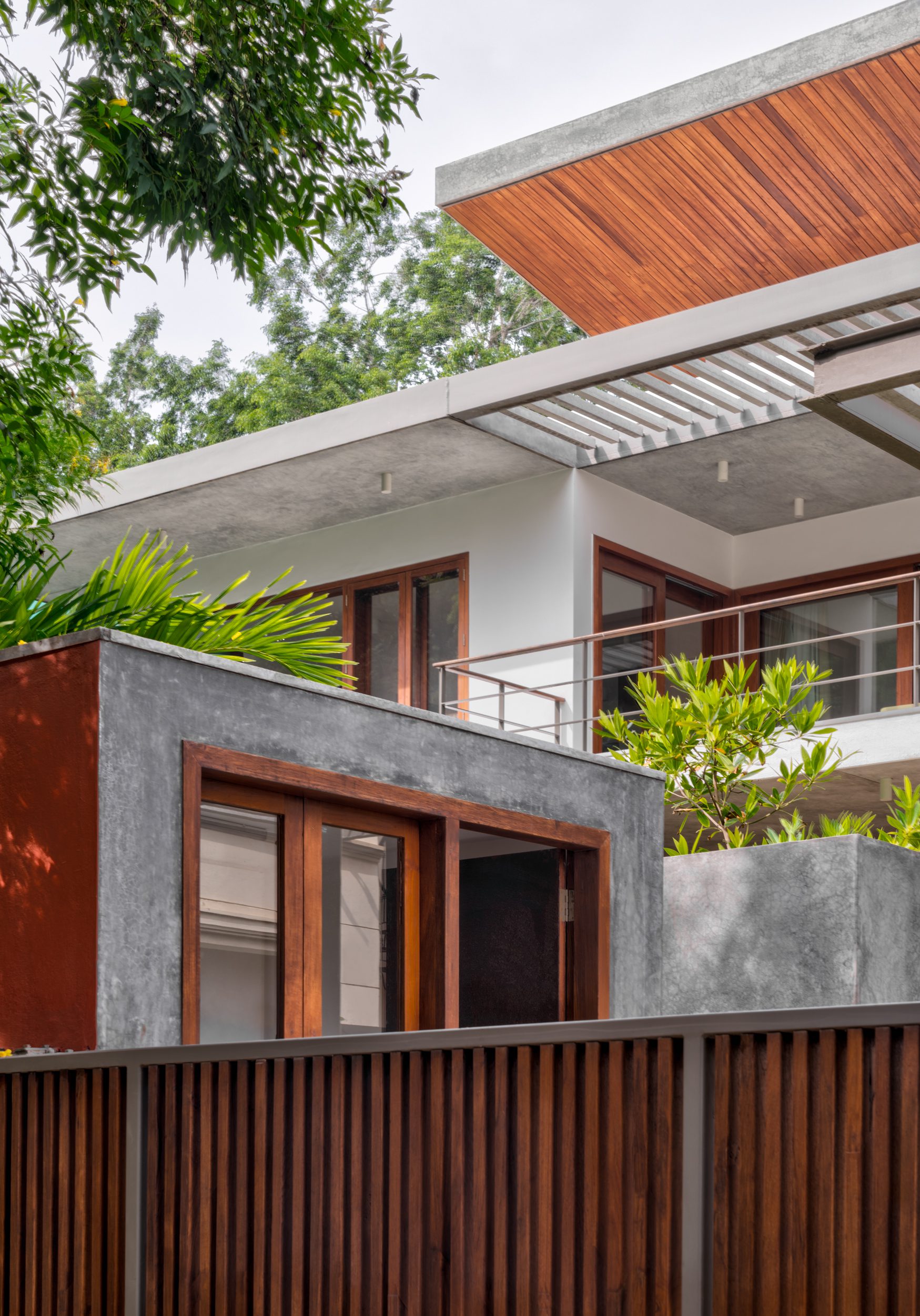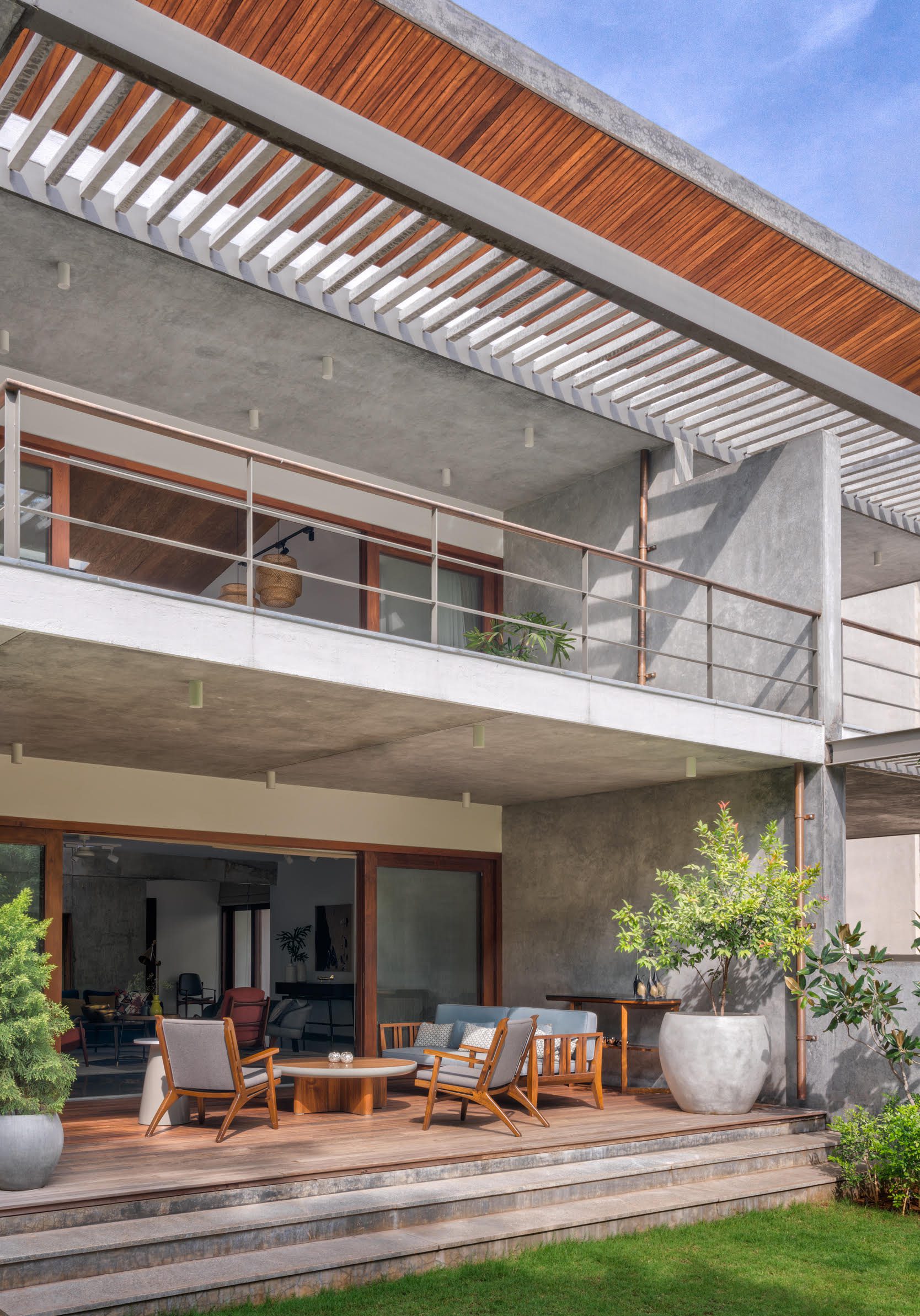 The house tells a narrative about its owners and what they do. The references to concrete construction as well as the textile traditions of Coimbatore adds a layer of rootedness and meaning. The spaces for the family and close friends are warm and interactive and the connect with nature is constant.