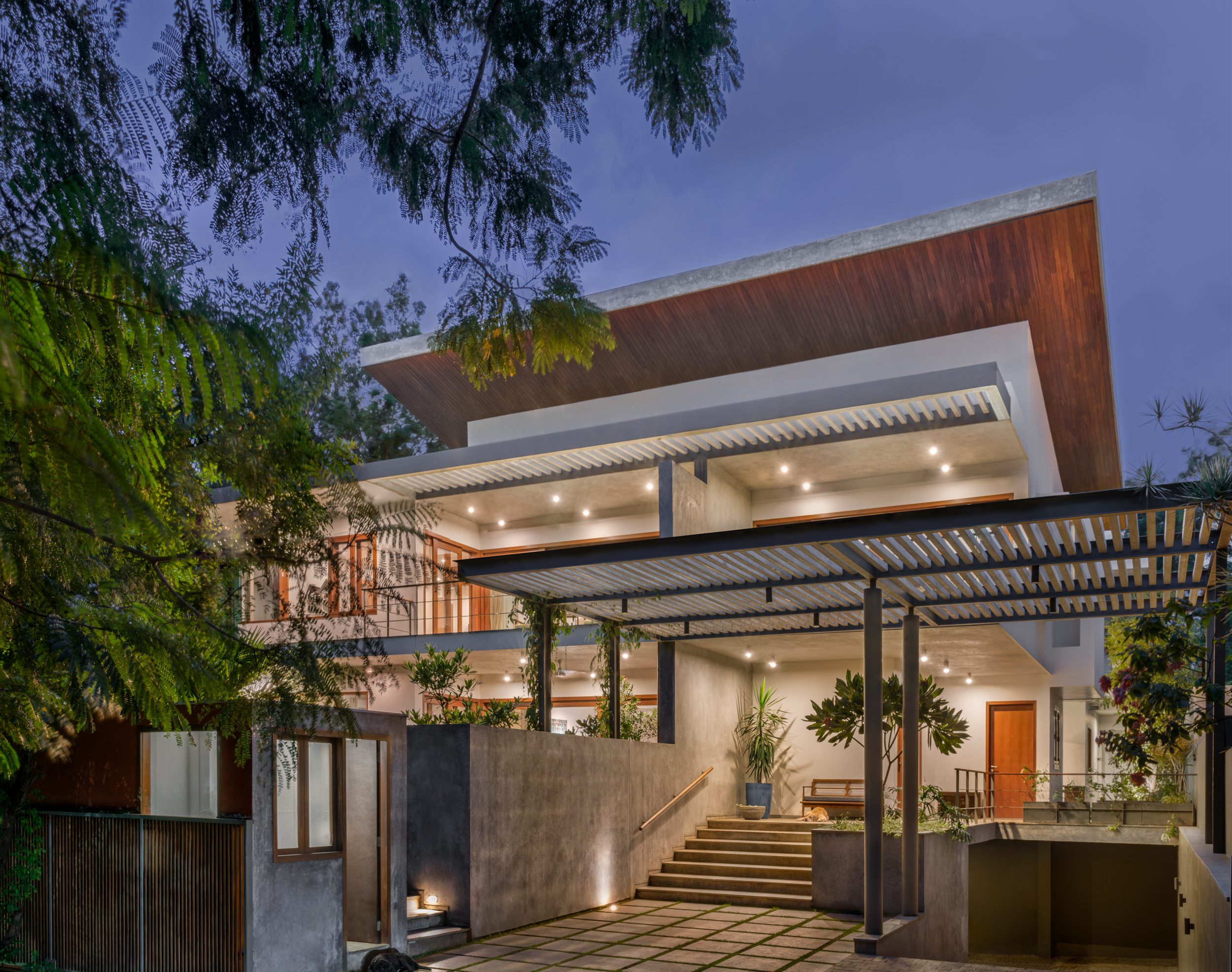 Tucked away in a leafy by lane off the historic Race Course road in Coimbatore, this house was intended to reflect the personality and lifestyle of the homeowner couple, their two young children and dogs.