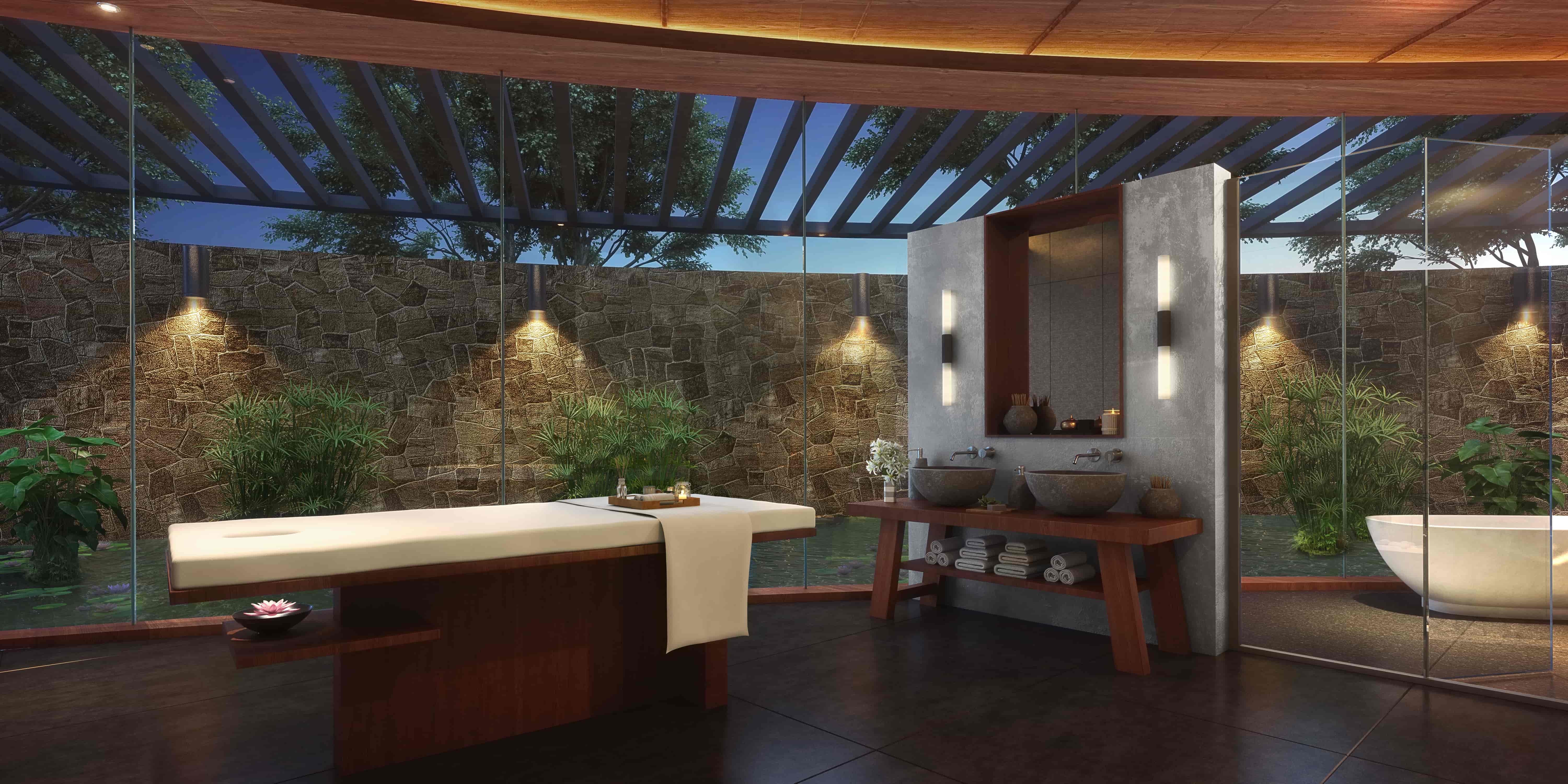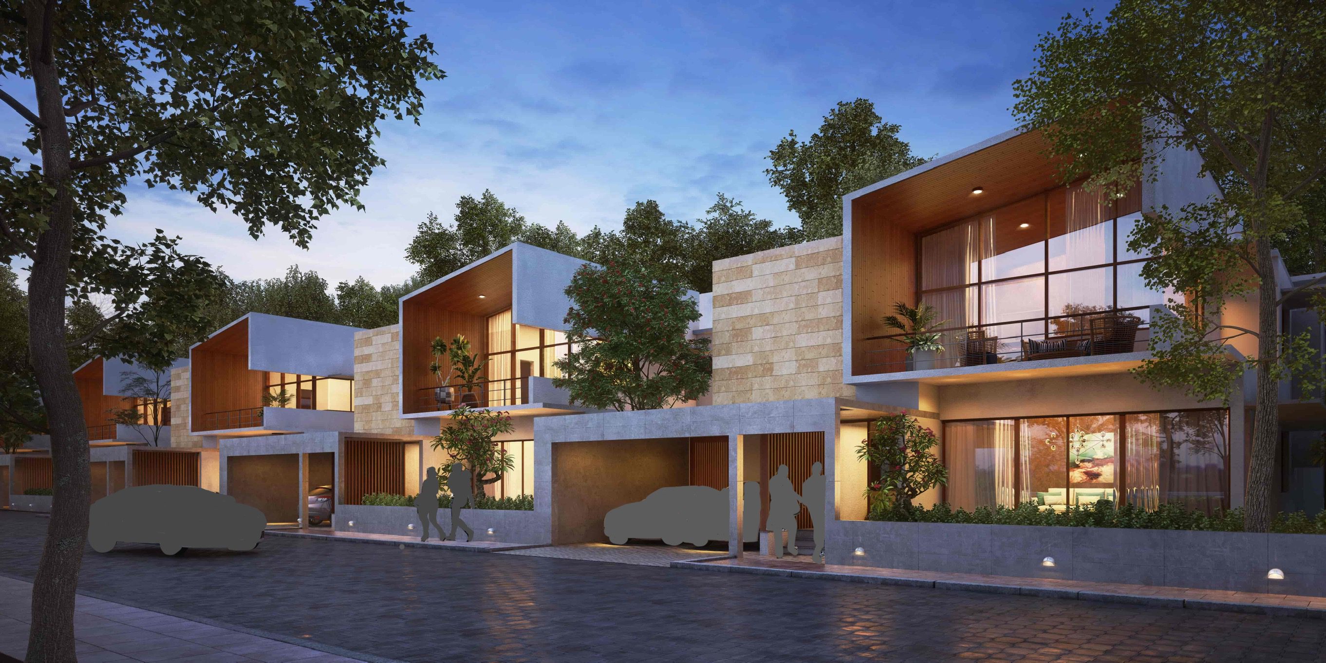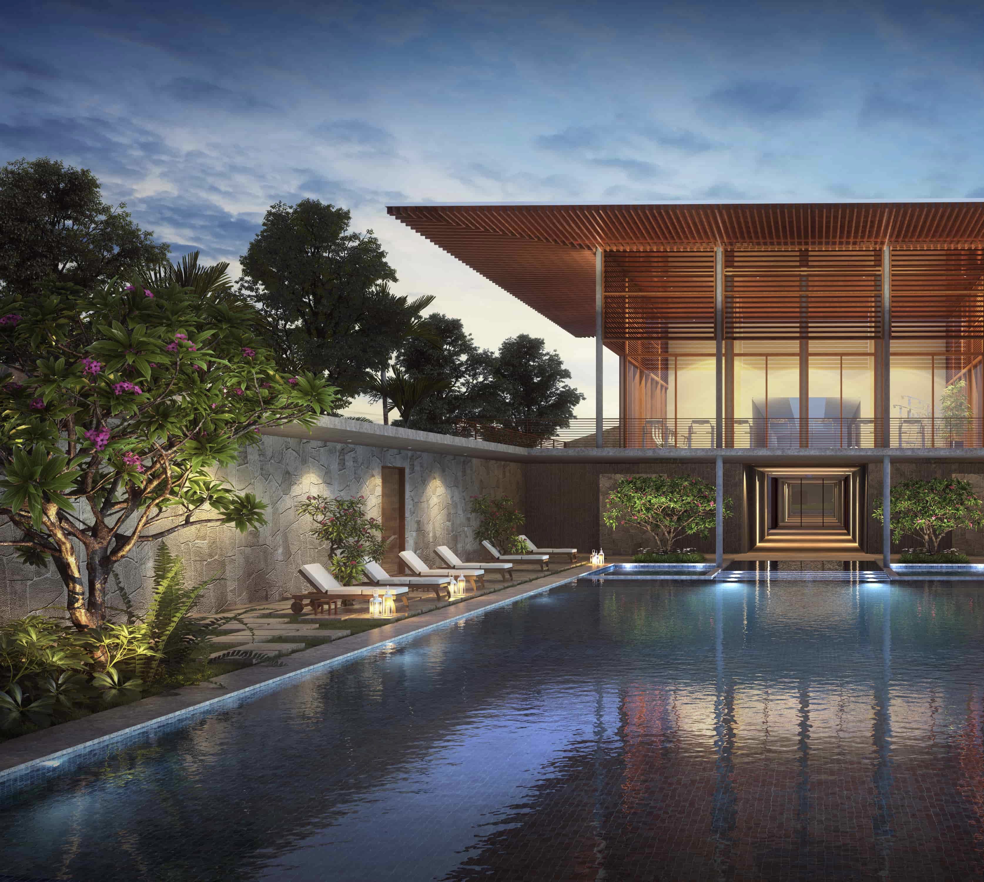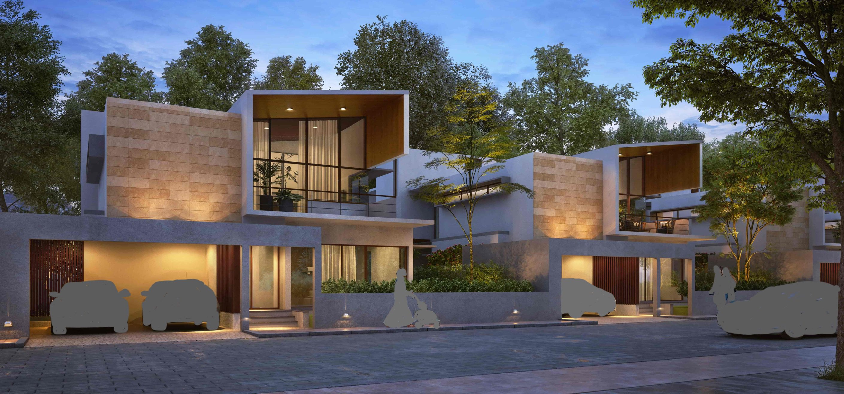 There are a total of 4 types of villas, in 2 plot sizes of 55’x90’ and 70’x100’. Each villa has a distinctive architectural form and by placing different clusters on opposite sides of the road, we overcame any sense of monotony. The 40,000 square foot Clubhouse is interspersed with natural water bodies and courtyards and has amenities such as a restaurant, spa, pool, gym, squash and badminton courts, library, banquets and a children’s play area.