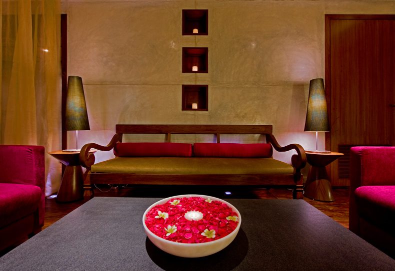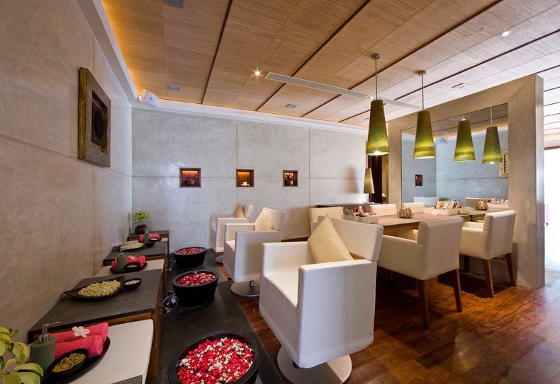 We drew inspiration from the traditional far eastern (Thai, Balinese and Chinese) treatments on offer in the Spa. Natural materials and neutral tones were used to exude a sense of healing and water features were introduced at certain focal points for the same effect. We chose a back to basics approach with the materials – teak wood floors and polished cement rendered walls offset a bamboo matted ceiling and are further complemented by the stark white upholstery on the seating.