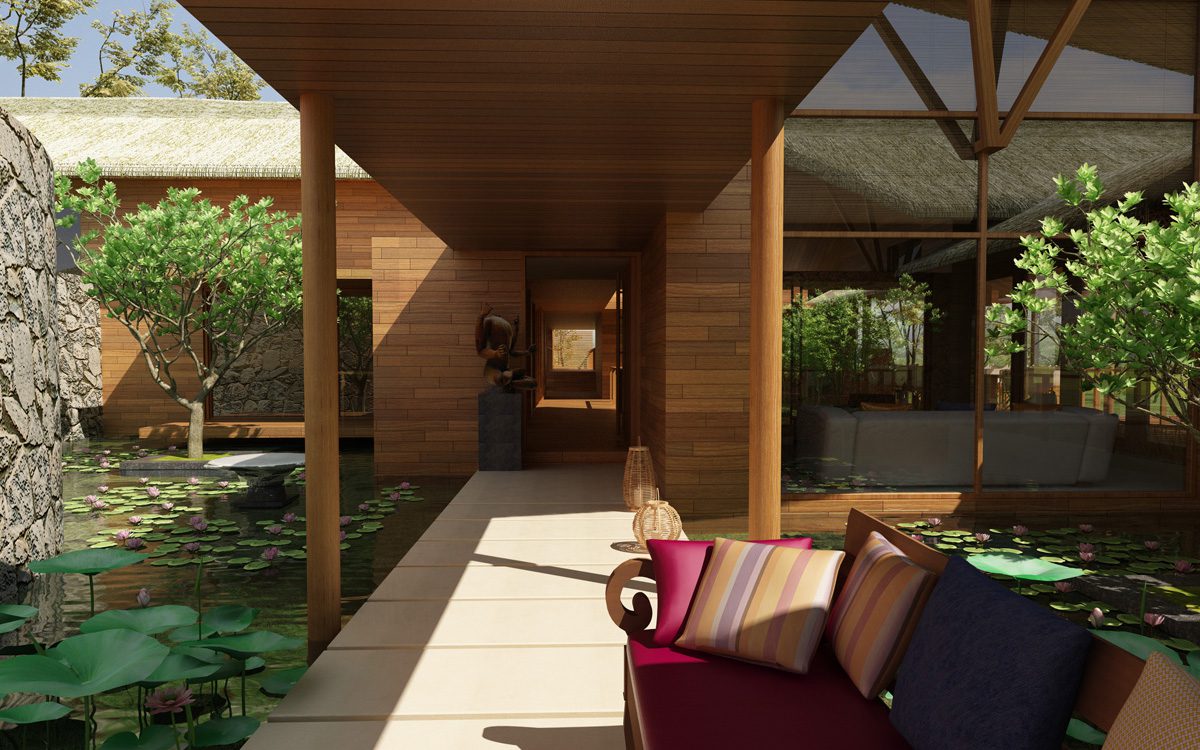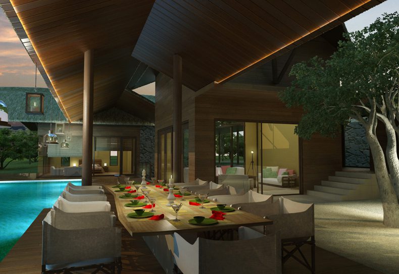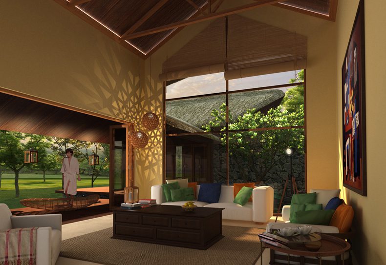 Owing to the attraction of getting ready-to-occupy homes, we conceived of custom fabricated sustainable timber and thatch structures that would be manufactured entirely in a factory, shipped to site and then erected within a span of 6 months. We also meticulously conceived of each and every piece of furniture, fixture, artwork, lighting and accessory for the Villas, and visualized the scheme for landscaping.