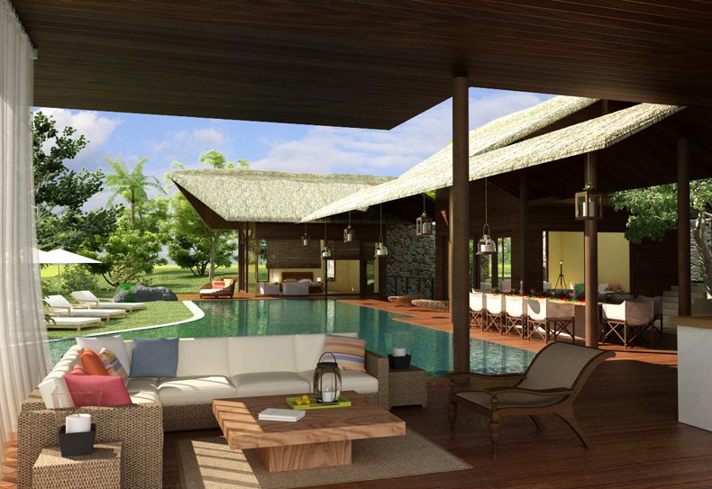 Configurations were for a 3 or 4 bedroom villa, equipped with an internal open-to-sky courtyard, an entertainment deck with a pool, living and family rooms, outdoor dining spaces, 2 kitchens and luxurious bedrooms with attached tropical bathrooms.